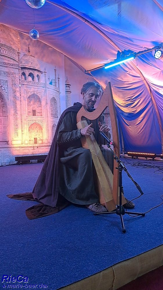 mit seiner Harfe die Halle in seine wundervollen Melodien hüllte, zum Tanze.